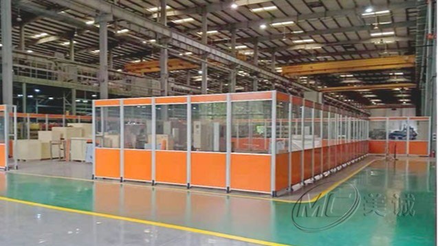 設備防護圍欄是在生產外設立防護措施,局部或全部建立鋁型材防護圍欄,以保證人員和設備安全,部分區域會安裝門或留出通道便于貨物進出和人員檢修。